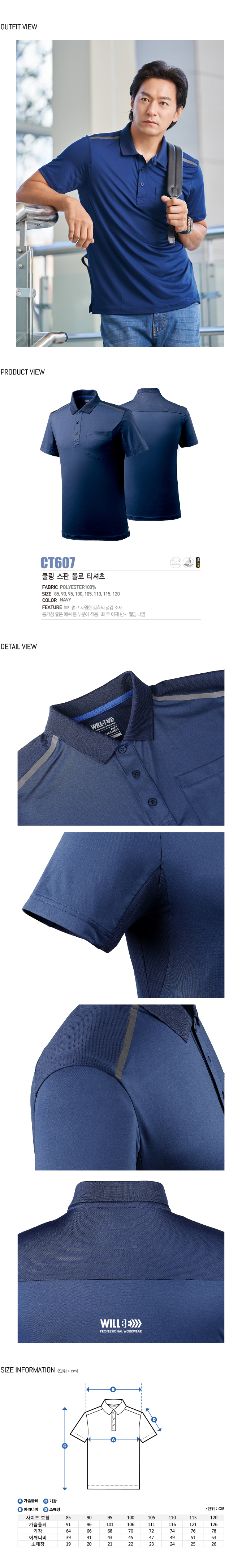 CT607 네이비 쿨링 스판 폴로 티셔츠