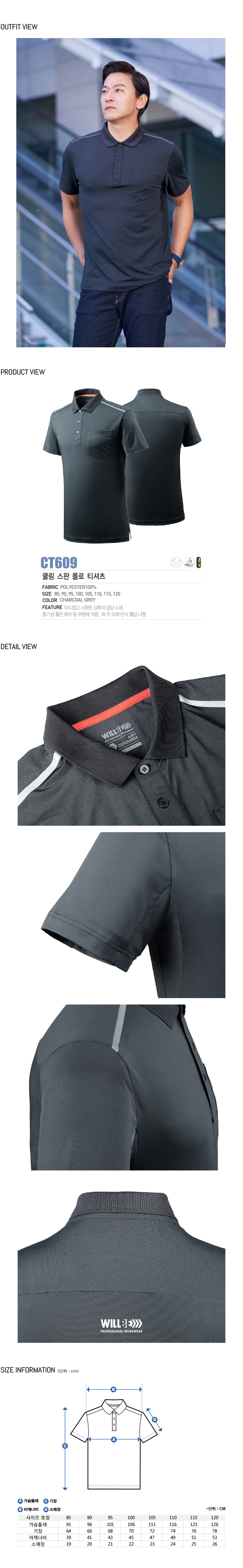 • CT609 차콜그레이쿨링 스판 폴로 티셔츠