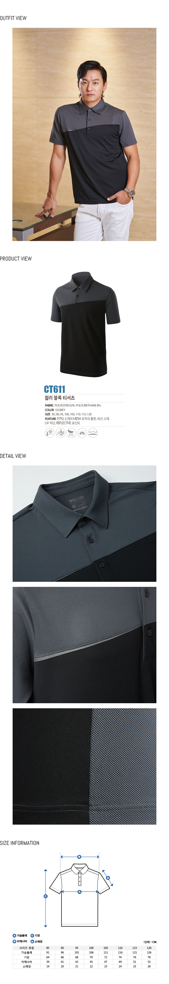 • CT611 다크그레이컬러 블록 티셔츠