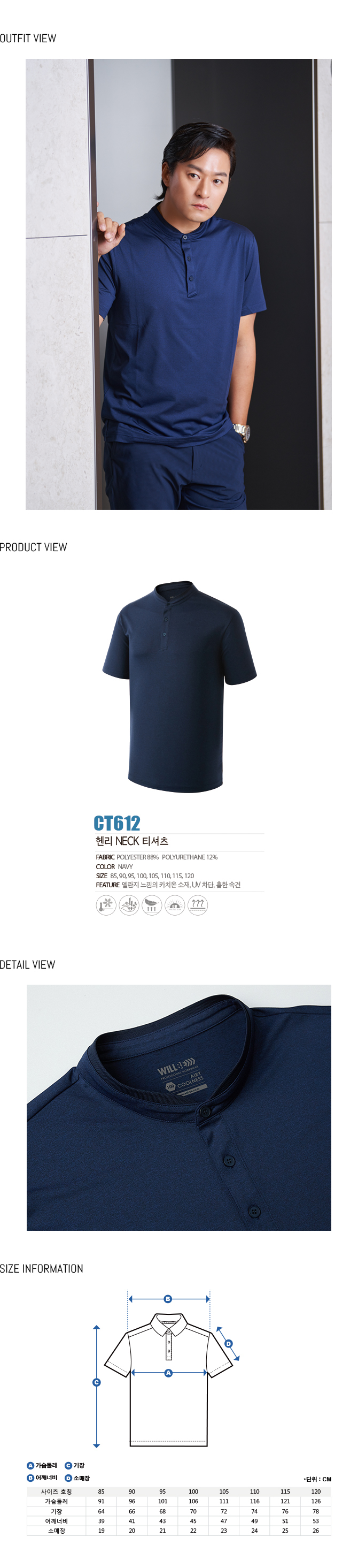 • CT612 네이비 헨리 NECK 티셔츠