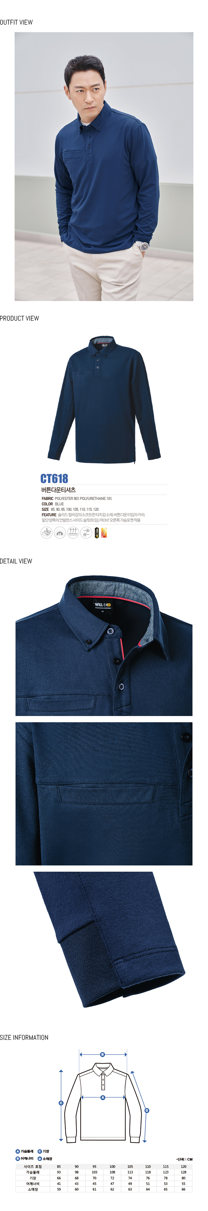CT618 블루 버튼 다운 티셔츠