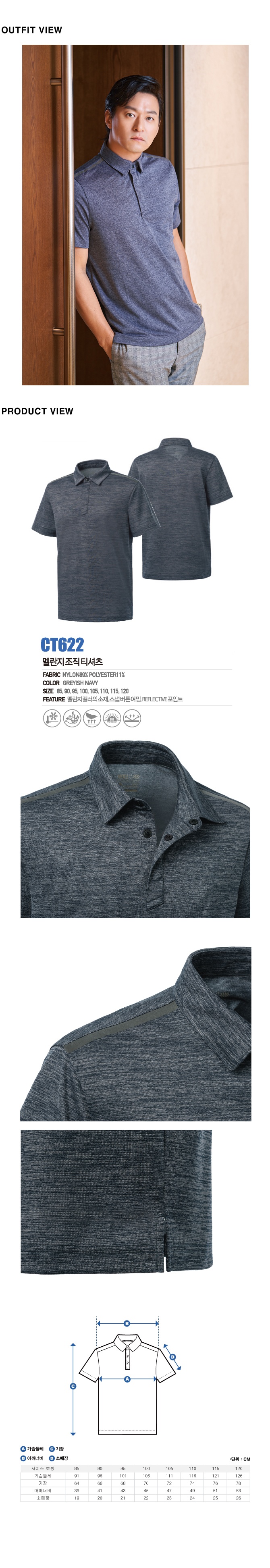 • CT622 그레이시 네이비 멜란지 조직 티셔츠