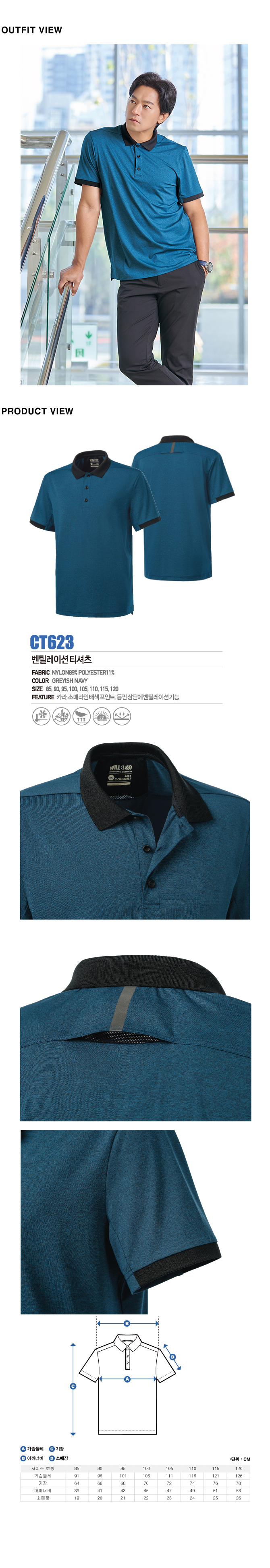 • CT623 그레이시 네이비 벤틸레이션 티셔츠