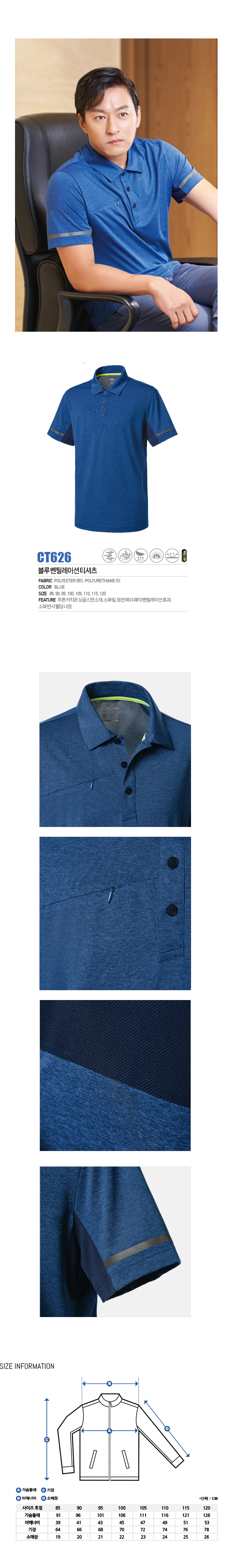 CT626 블루 벤틸레이션 티셔츠